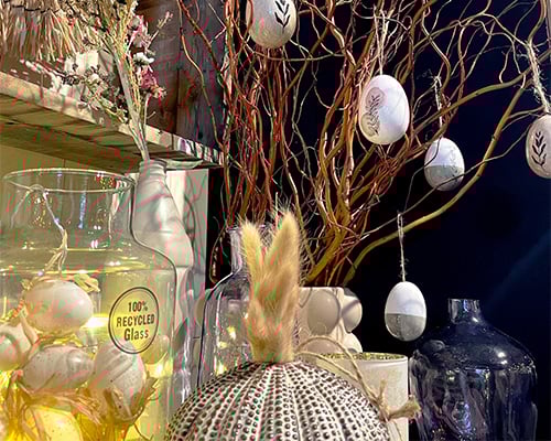Als je geschikte paastakken hebt gevonden, kun je ervoor kiezen om de takken te versieren met paasdecoratie. Natuurlijk is dat niet verplicht, want sommige takken staan zo mooi in bloei dat het versieren van de takken niet nodig is. Wil je wel aan de slag met wat extra paasitems in huis? Dan kun je er kiezen voor kiezen om leuke eitjes van glas, papier en hout in de takken te hangen.