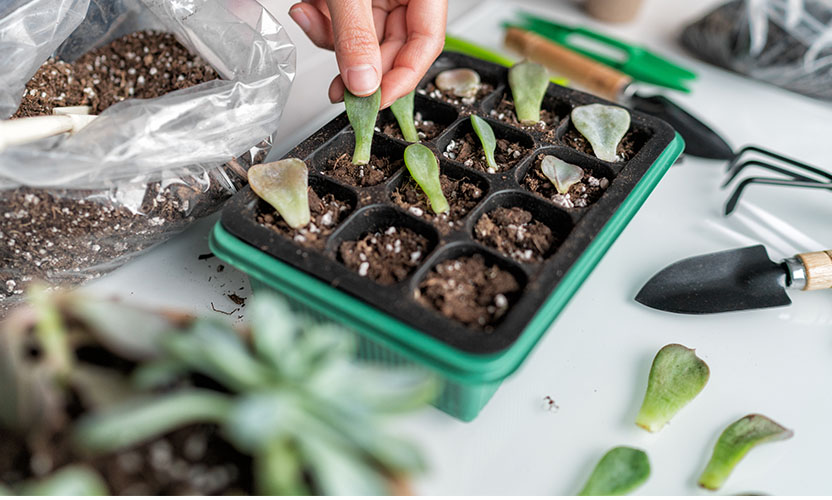 Deze makkelijke vetplant is verkrijgbaar in tientallen verschillende kleuren. Hoe je ze stekt? Trek wat van de onderste blaadjes voorzichtig los. Leg de losgetrokken blaadjes vervolgens op wat droge potgrond en wacht geduldig af totdat de blaadjes na wortels krijgen (dit kan enkele weken duren). Wanneer de bladeren wortels hebben gekregen kun je ze af en toe bemisten met water. Na verloop van tijd beginnen de wortels verder te groeien, vormt zich een nieuwe mini-vetpplant, en sterft je originele stekblad af. De minivetplant met wortels kun je uiteindelijk in de aarde planten.