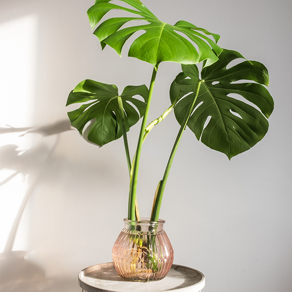 Monstera zijn zijn ontzettend herkenbaar door de bijzondere gaten (vandaar de bijnaam 'gatenplant') in hun blad en hun bekende luchtwortels. Bovendien laat een Monstera zich gemakkelijk stekken: knip 1-2 cm onder de luchtwortel af en zet de onderkant van je stek in het water.