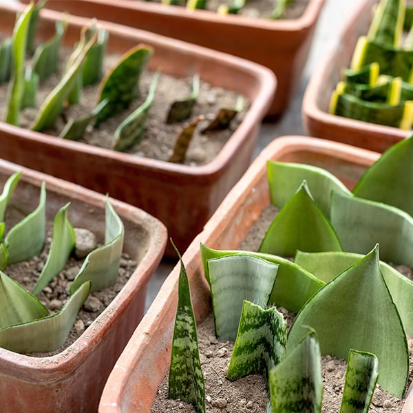 Sanseveria (ookwel vrouwentong) staat bekend als een makkelijke kamerplant. Je raadt het al: deze kamerplant is ook nog eens makkelijk te stekken. Knip een deel van een blad af en zet het rechtop in je stekpot en wacht geduldig af, het kan best een tijd duren voordat jouw vrouwentong stekken wortels ontwikkelen.