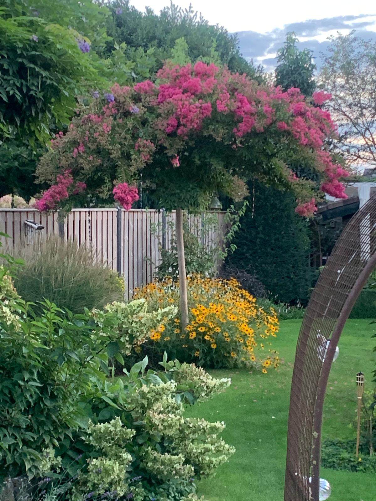 Danielle stuurde ons een paar foto’s van haar tuin – sfeervolle beelden die laten zien hoe groen en levendig haar buitenruimte is. Je ziet hoe planten de hoofdrol spelen en er op een natuurlijke manier plek is voor insecten en andere dieren. Een tuin waarin rust, kleur en biodiversiteit mooi samenkomen!