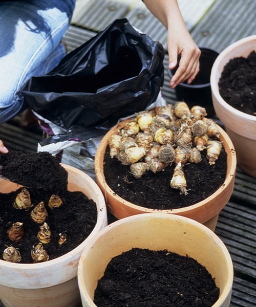 Je kunt een pot of plantenbak zo slim vullen dat je er het hele tuinseizoen plezier van hebt. Dit doe je met de zogenaamde laagjes- of lasagne-methode. Onderin stop je vroegbloeiende bollen, daarboven laatbloeiende bollen, later aangevuld met zomerbollen of eenjarig perkgoed.