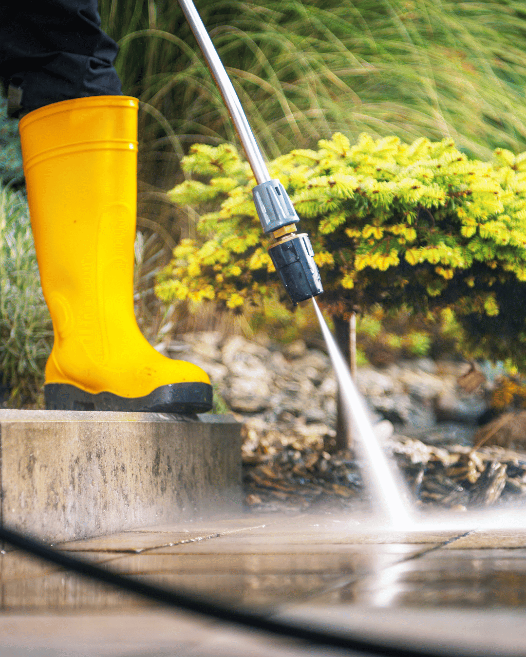 Het verwijderen van groene aanslag en mos hoort bij de voorjaarsschoonmaak van je tuin. Dit kan met een hogedrukspuit of met een speciale reiniger voor terrassen en bestrating.