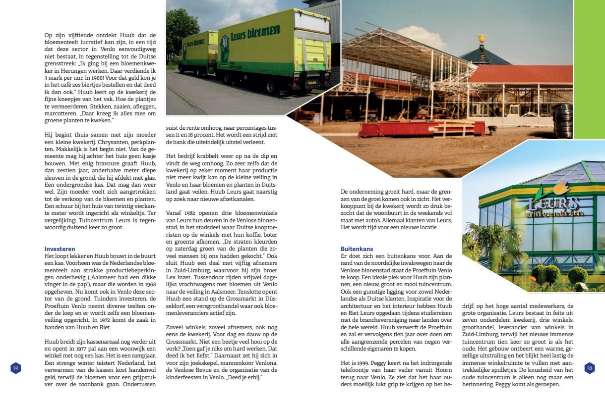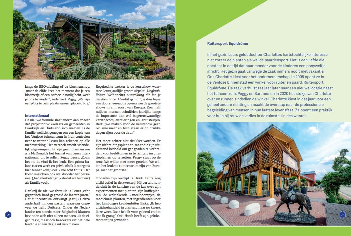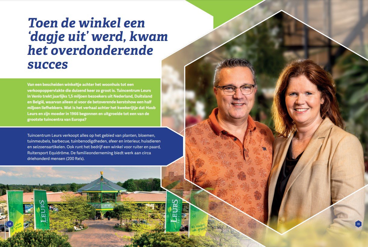Ondernemend Venlo lanceerde op 3 oktober 2024 met trots het boek ‘Hard werken, vooruitkijken en geloof houden. Waarom ondernemend Venlo zoveel wereldmarktleiders en andere kampioenen kent’. Dit inspirerende boek verzamelt de verhalen van maar liefst 22 Venlose ondernemers, die elk op hun eigen manier hebben bijgedragen aan de bloei van de regio en het bereiken van mondiale successen. Ook Tuincentrum Leurs doet in dit boek 'een boekje open' over het verhaal achter het succes van het bedrijf zoals we dat nu kennen!
