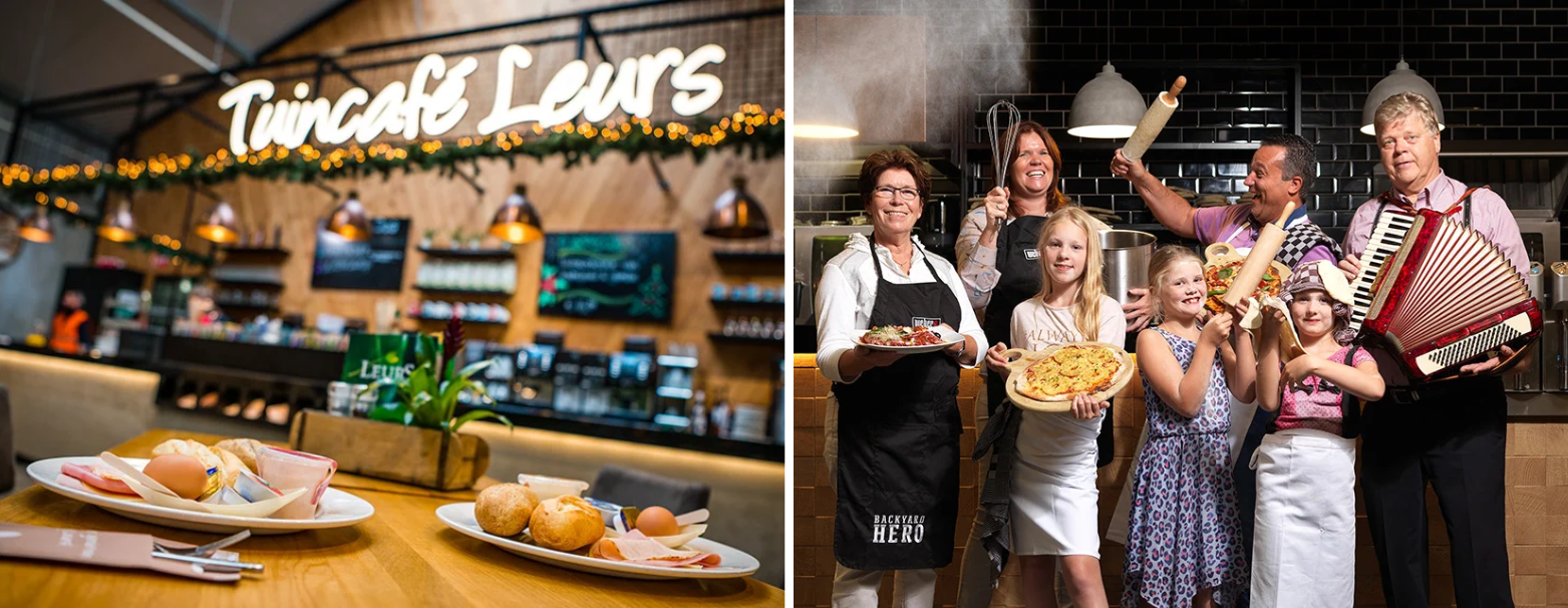 Peggy Leurs: „Op een zeker moment zeiden we: ‘We zijn geen retailbedrijf meer, maar een dagje uit’. De meeste mensen gaan twee, hooguit vier keer per jaar naar een tuincentrum om planten te kopen. Maar op zondagen wordt elke keer weer de vraag gesteld: wat zullen we doen vandaag? Naar familie? Wandelen? Naar de Kasteeltuinen? Of gaan we naar Leurs? Wij willen in dat rijtje staan van ‘wat gaan we doen vandaag’ en niet meer van ‘waar gaan we planten kopen’? Bart: „We zagen dat er maar weinig tuincentra met goede horeca waren. De meeste mensen komen hier niet meer om alleen planten te kopen, maar om er even uit te zijn, elkaar te ontmoeten, een drankje en een hapje te nemen.” En het verdienmodel? Je loopt op weg naar het tuincafé tien keer langs de BBQ-afdeling of de bloemenshop, „maar de elfde keer, het moment dat je een bloemetje of een barbecue nodig hebt, weet je ons te vinden”, redeneert Peggy. „We zijn een place to be in plaats van een place to buy.”