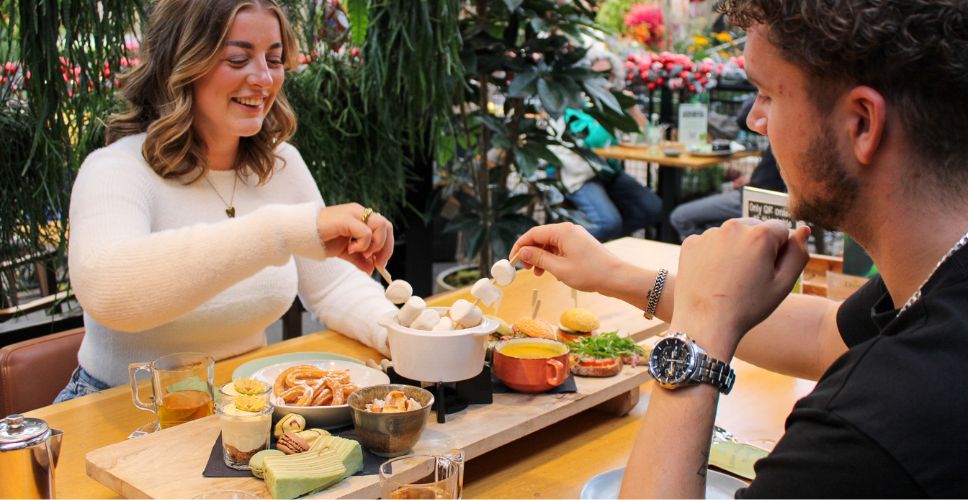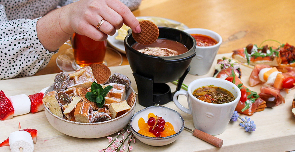 Geniet van een extra luxe high tea met verrassende seizoenshapjes, met eigen chocoladefondue!
