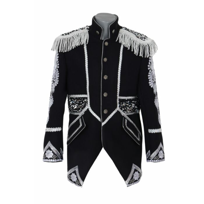 Deze Jas Silver Deluxe heren is een opvallende carnavalsjas die schittert door zijn rijke zilveren borduursels glimmende pailletten en royale epauletten waardoor hij direct de aandacht trekt tijdens Vastelaovend in Venlo. De diepzwarte stof vormt een stijlvol contrast met het zilverwerk waardoor de jas een luxe uitstraling krijgt die perfect past bij de feestelijke sfeer van Tuincentrum Leurs Venlo. Dit model combineert een klassieke snit met moderne extravagantie zodat je tijdens elk carnavalsfeest zelfverzekerd en feestelijk voor de dag komt.