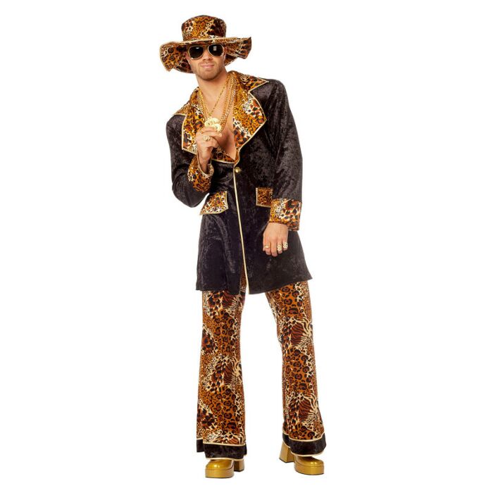 Deze pimp king outfit in bruin met dierenprintdetails is een opvallende keuze voor wie graag in stijl feestviert. Het driedelige kostuum bestaat uit een broek, jasje en hoed. De combinatie van bruin met dierenprint geeft een speelse en gedurfde uitstraling die perfect past bij carnaval of themafeesten. Accessoires zijn niet inbegrepen, zodat je de look naar eigen smaak kunt afmaken. Verkrijgbaar bij Tuincentrum Leurs in Venlo met een uitgebreide Vastelaovendafdeling vol inspiratie.