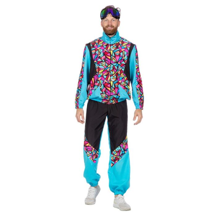 Deze ski trainingspak voor heren in neon kleuren zorgt voor een vrolijke en sportieve uitstraling. De set bestaat uit een broek en een jack met felle kleuren en een opvallend patroon dat direct in het oog springt. Het lichte en soepel vallende materiaal draagt comfortabel en maakt dit pak ideaal voor carnaval, après ski feesten of een kleurrijke winters look. De accessoires op de foto zijn niet inbegrepen zodat je het pak geheel naar eigen stijl kunt combineren. Verkrijgbaar bij Tuincentrum Leurs in Venlo met een uitgebreide Vastelaovendafdeling vol inspiratie.